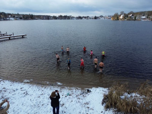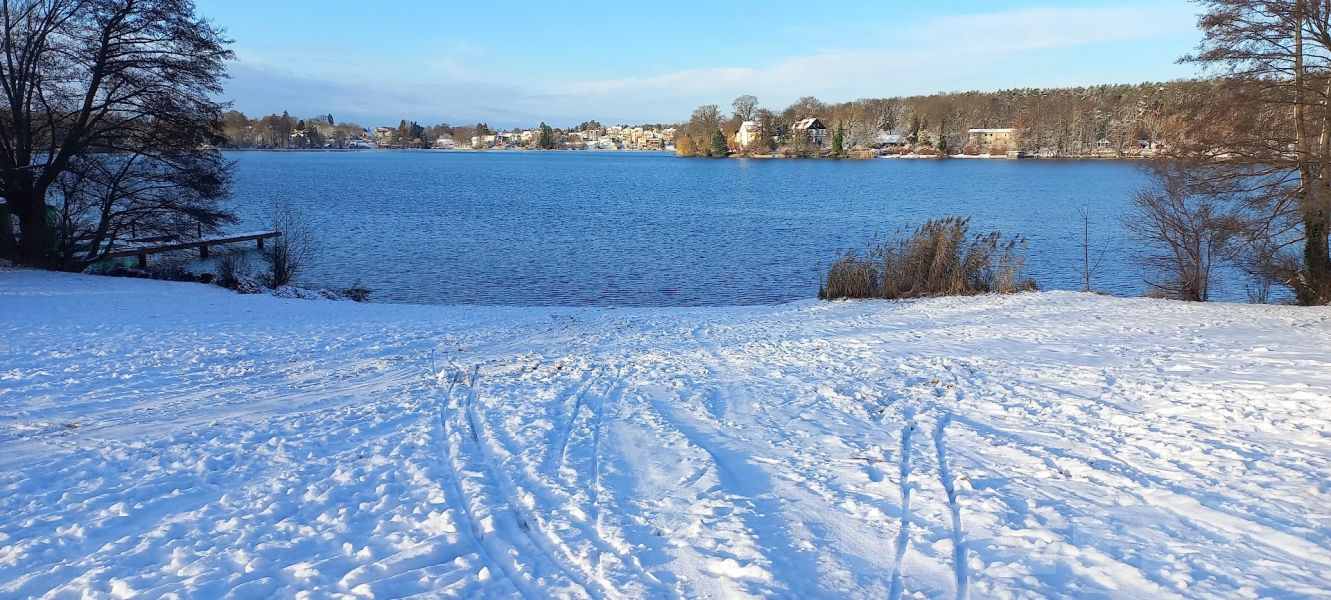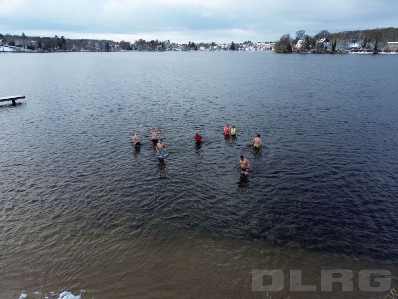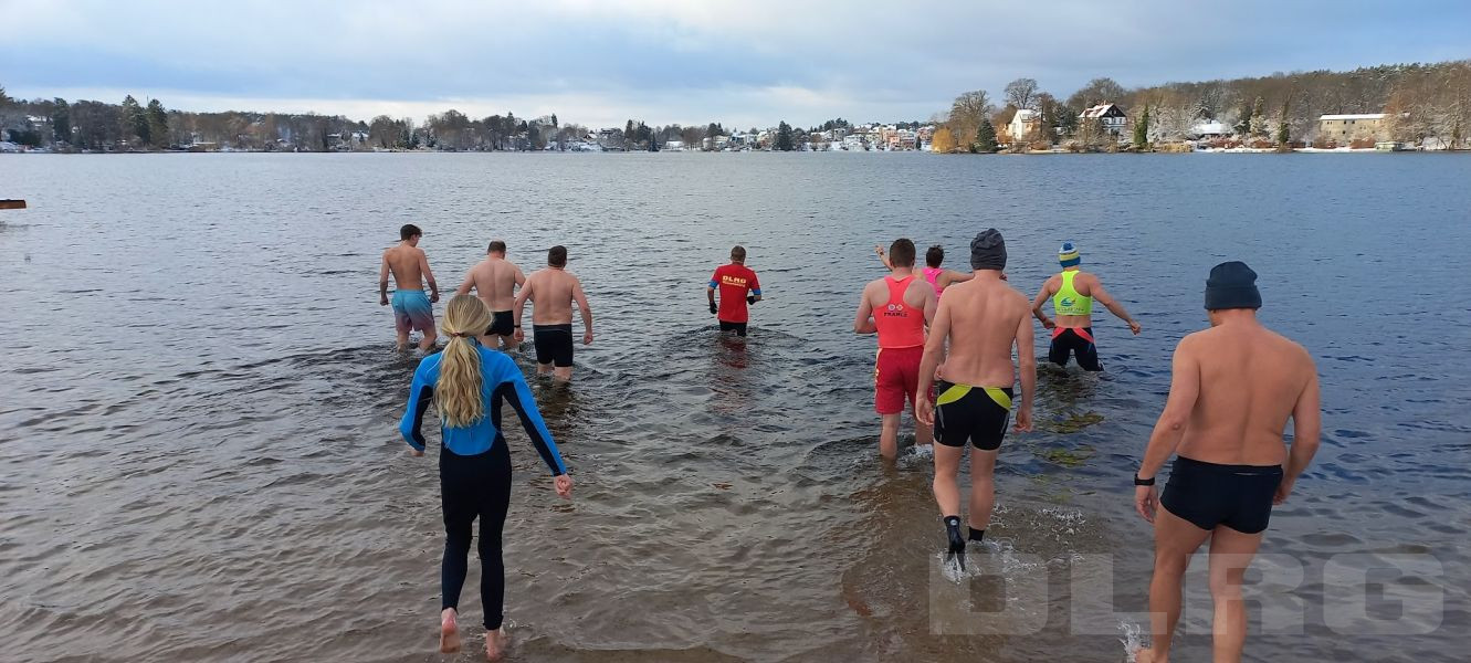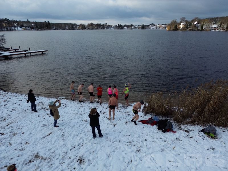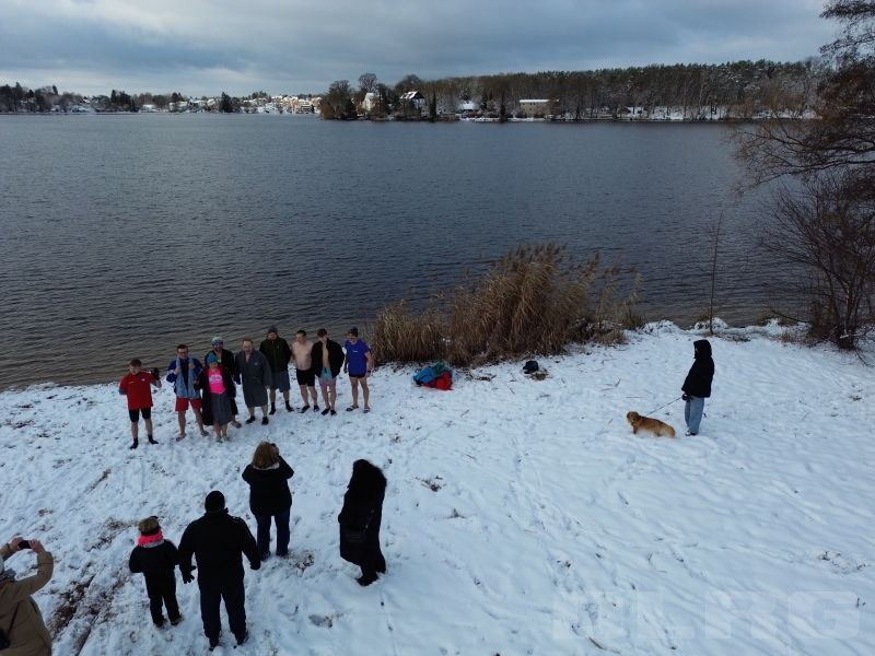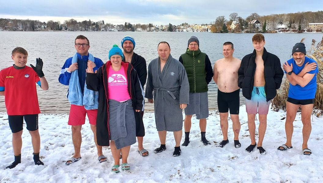 Am Sonntag den 04.01.2026 trafen sich knapp 30 Mitglieder zum traditionellen Anbaden an der Wasserrettungsstation in Grünheide. Es erwartete uns eine wunderschöne schneebedeckte Seenlandschaft. Bei einer Außentemperatur von -1 Grad und einer Wassertemperatur von 1,8 Grad stürzten sich doch immerhin 10 mutige Schwimmer in den eiskalten Peetzsee.