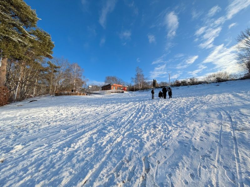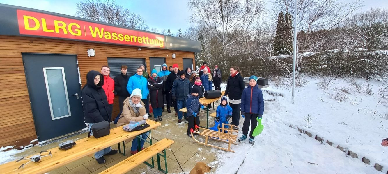 Zum Aufwärmen gab es für alle im Anschluss Kinderpunsch und heißen Kakao mit Sahnehäubchen. Der kleine Hunger wurde durch Bratwurst und Kuchen gestillt. Die jüngeren Mitglieder nutzten den Schnee und rodelten den abfallenden Strand Richtung Wasser hinunter.