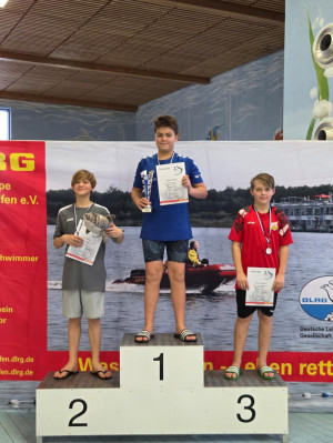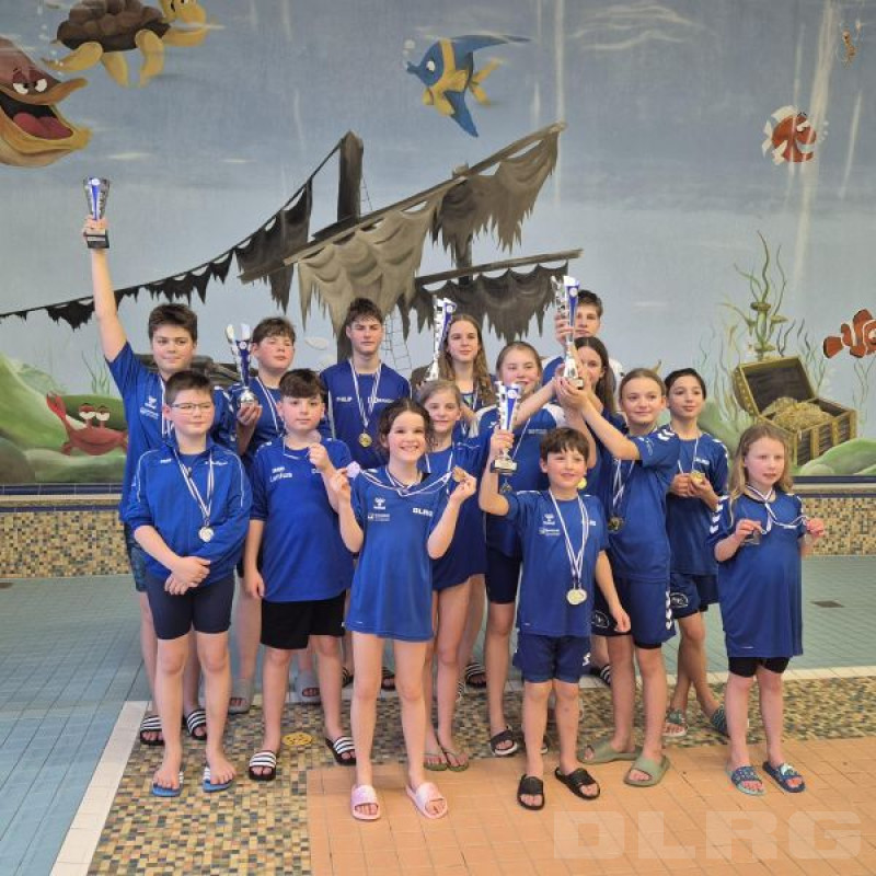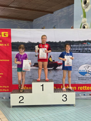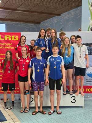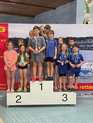 Unsere beiden anderen Mannschaften (AK11/12: Luci, Sara, Nilay, Emilio und Alma; AK15/16: Oskar, Philip, Wilma, Lina und Lino) erkämpften sich jeweils den Spitzenplatz. Es gab also insgesamt fünf Pokale und damit fünfmal den Jubelruf: „DLRG“ - „Oder-Spree!“ bei der Siegerehrung.