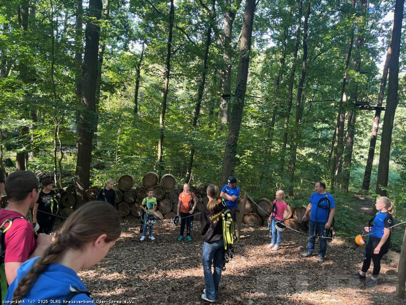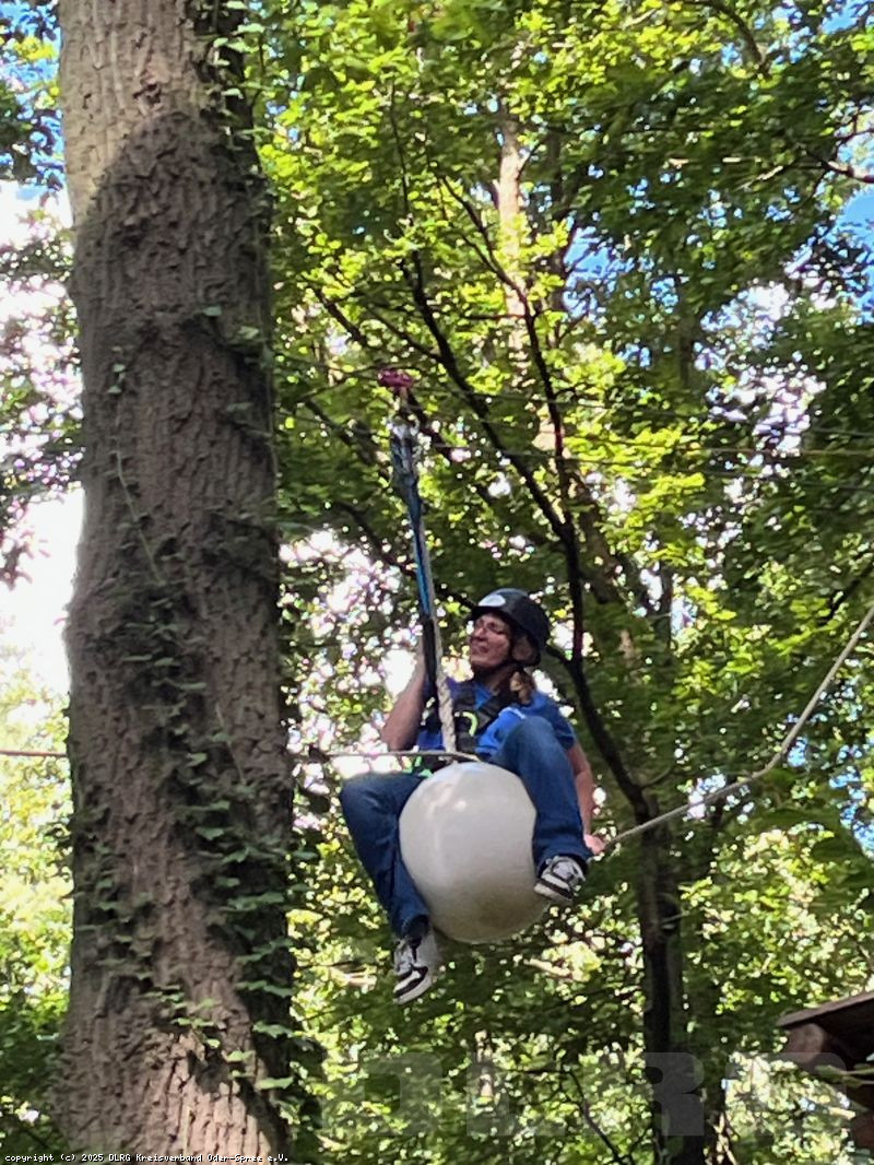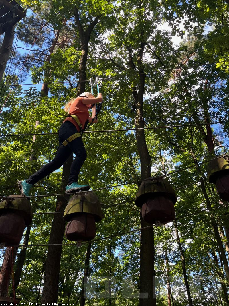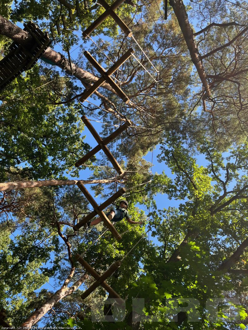 Hoch hinaus ging es am 07.09.2025 für 15 Kinder und Jugendliche unseres Vereins. Gemeinsam mit 4 Betreuern führte uns der diesjährige Jugendausflug in den Kletterwald Bad Saarow. Bei schönstem Herbstwetter konnte der Kletterwald ausgiebig erkundet werden. Nach einer kurzen Einweisung schwärmten wir in Kleingruppen auch schon los um uns den Hindernissen hoch oben in den Bäumen zu stellen. Highlight waren die vielen Seilbahnrutschen, an denen es rasant abwärts ging. Hier und da mussten wir uns Mut zu sprechen, um irgendwie über das nächste Hindernis zu gelangen, da es doch viel Kraft kostete sich von „Ast zu Ast zu hangeln“. Am Ende kamen alle Kletterer heil wieder unten an. Anita hatte zur Stärkung Kuchen mitgebracht, der gerne „verputzt“ wurde.