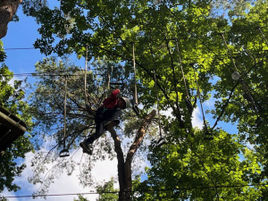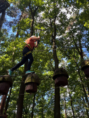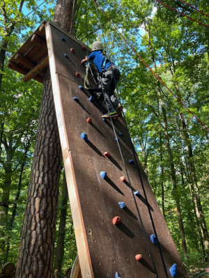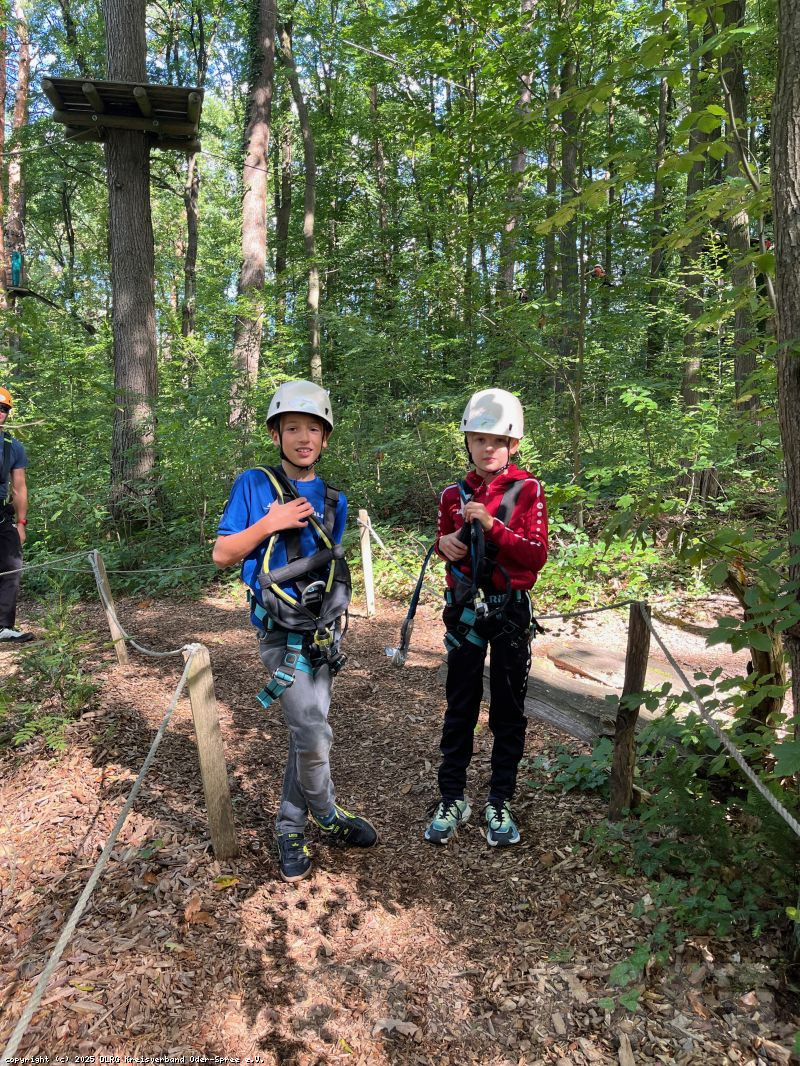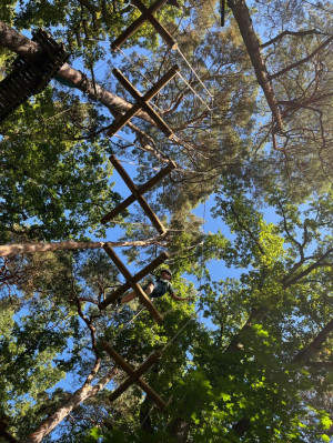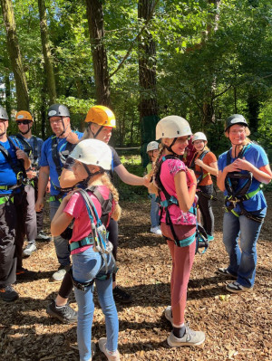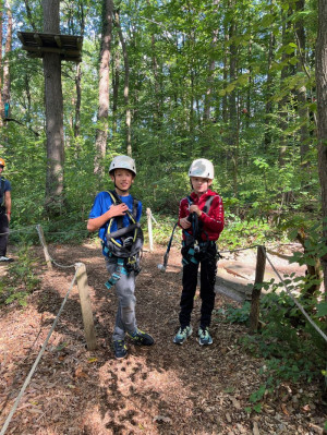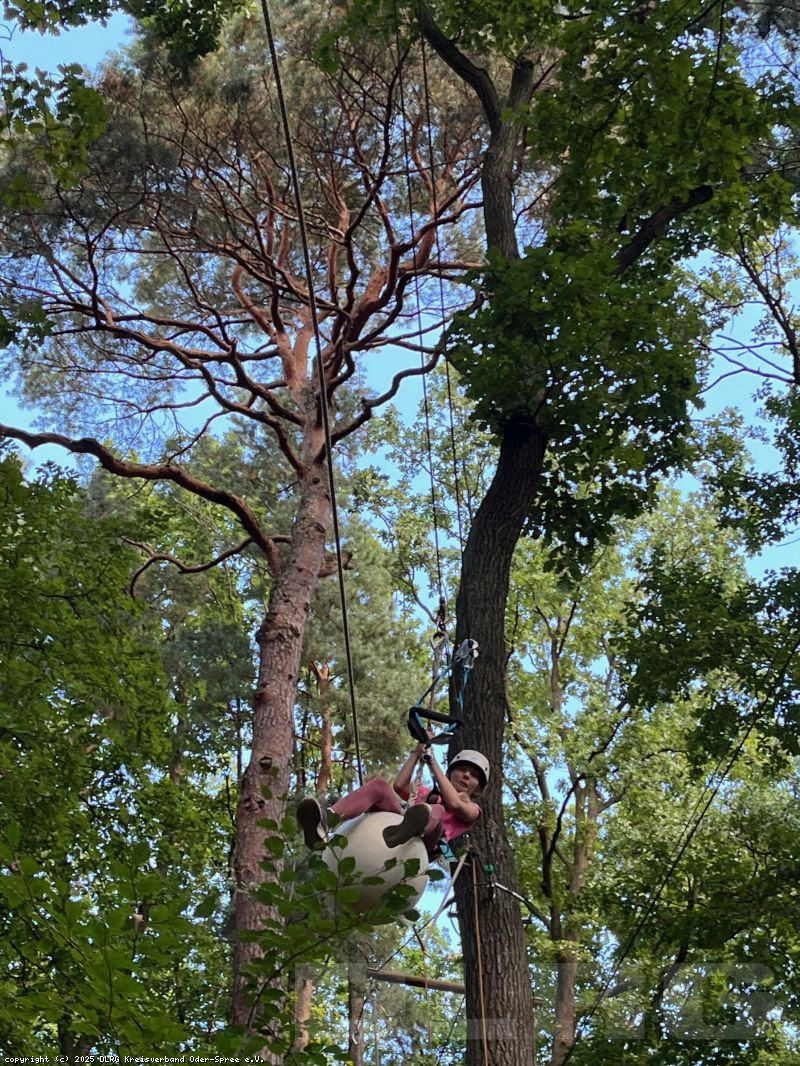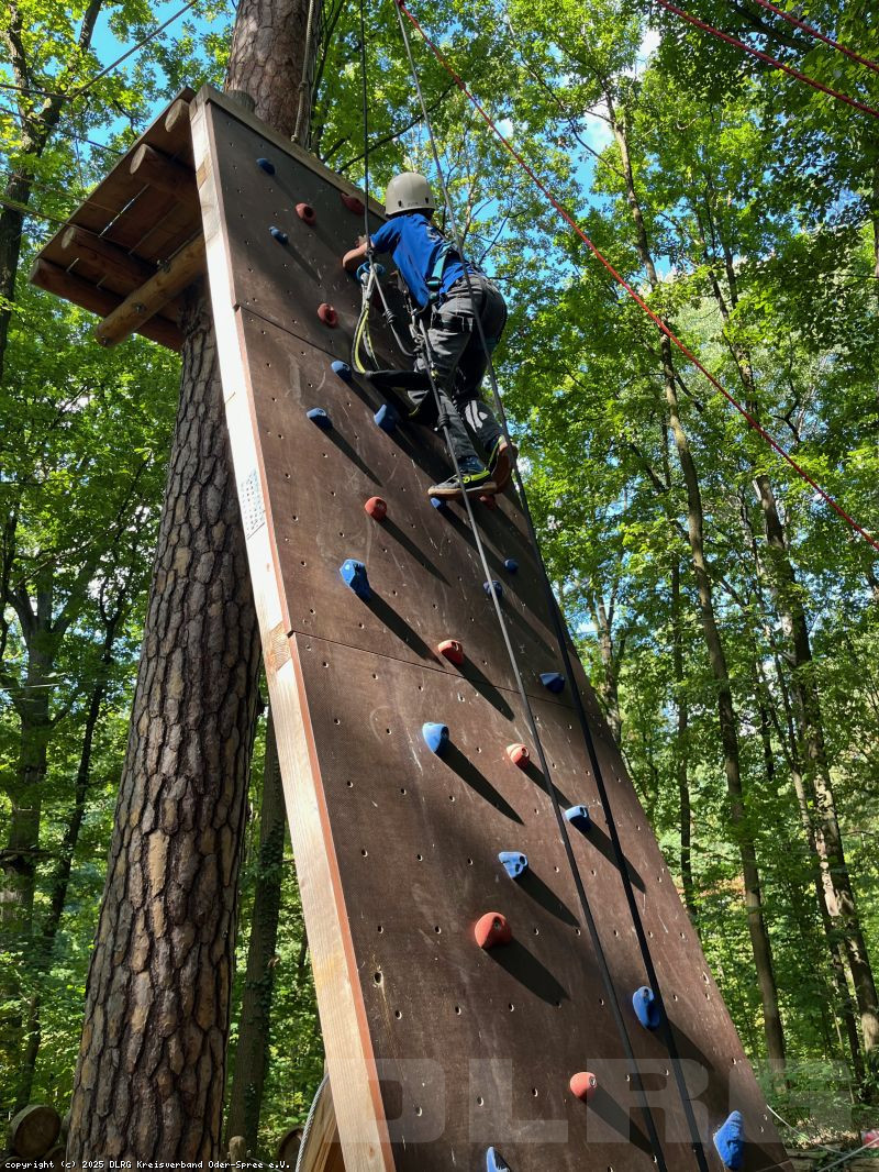 Hoch hinaus ging es am 07.09.2025 für 15 Kinder und Jugendliche unseres Vereins. Gemeinsam mit 4 Betreuern führte uns der diesjährige Jugendausflug in den Kletterwald Bad Saarow. Bei schönstem Herbstwetter konnte der Kletterwald ausgiebig erkundet werden. Nach einer kurzen Einweisung schwärmten wir in Kleingruppen auch schon los um uns den Hindernissen hoch oben in den Bäumen zu stellen. Highlight waren die vielen Seilbahnrutschen, an denen es rasant abwärts ging. Hier und da mussten wir uns Mut zu sprechen, um irgendwie über das nächste Hindernis zu gelangen, da es doch viel Kraft kostete sich von „Ast zu Ast zu hangeln“. Am Ende kamen alle Kletterer heil wieder unten an. Anita hatte zur Stärkung Kuchen mitgebracht, der gerne „verputzt“ wurde.