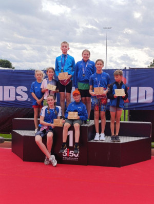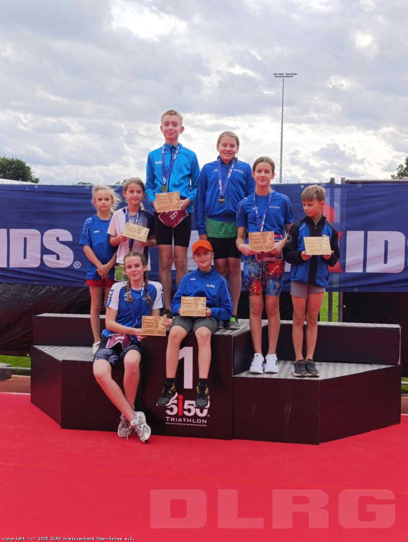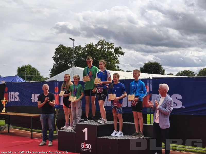 Die ältesten Teilnehmer (AK12-13) legten im Wasser 200m und läuferisch 1,3km zurück. Dabei erkämpfte sich Lina den ersten Platz und Wilma und Lannis jeweils Bronze.